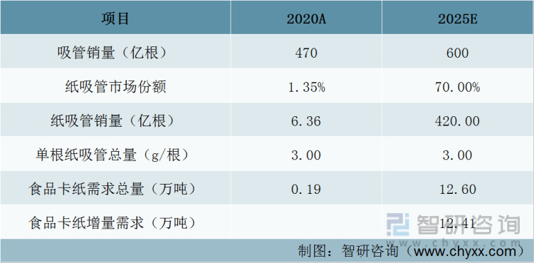 纸吸管食品卡纸增量需求测算表