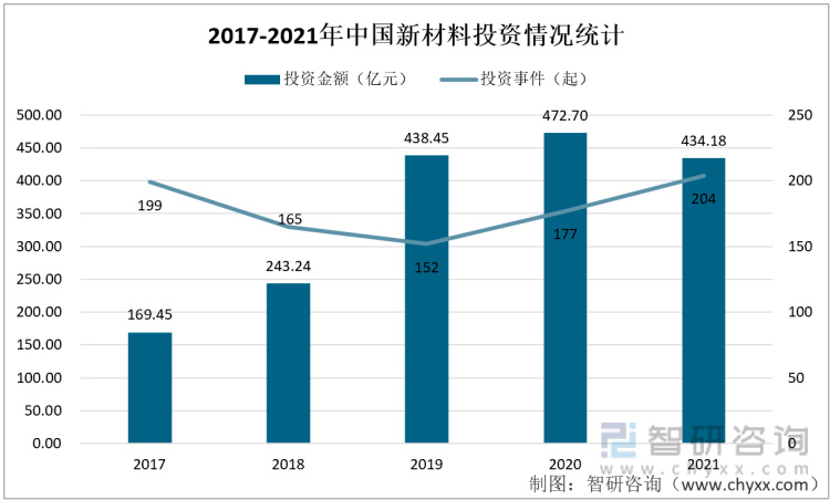 2017-2021年中国新材料投资情况统计