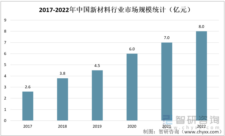 2017-2022年中国新材料行业市场规模统计