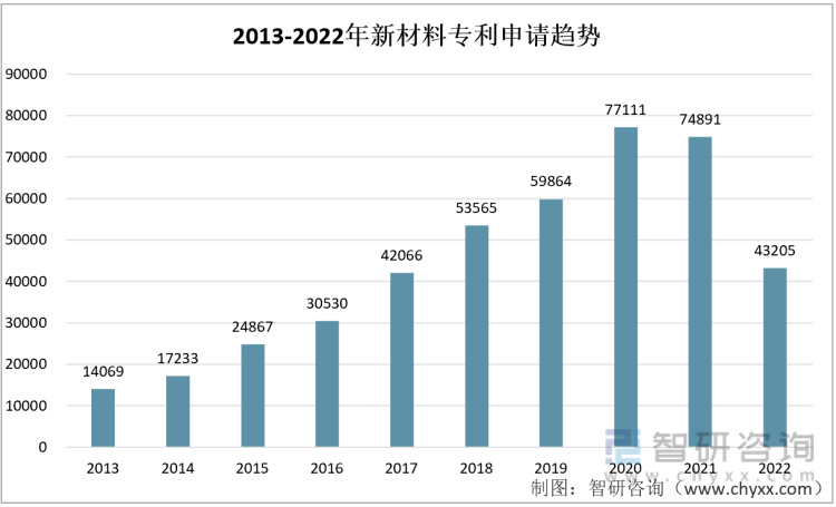 2013-2022年中国新材料专利申请量
