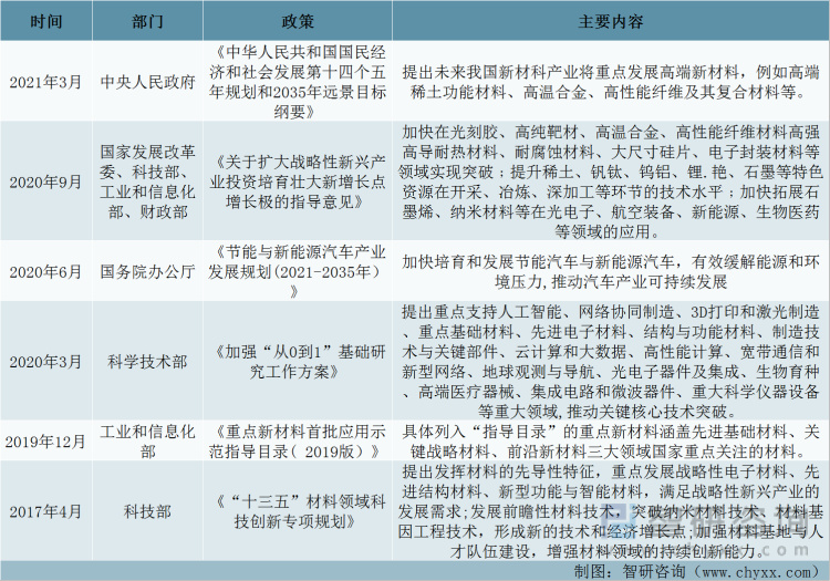 新材料行业部分政策